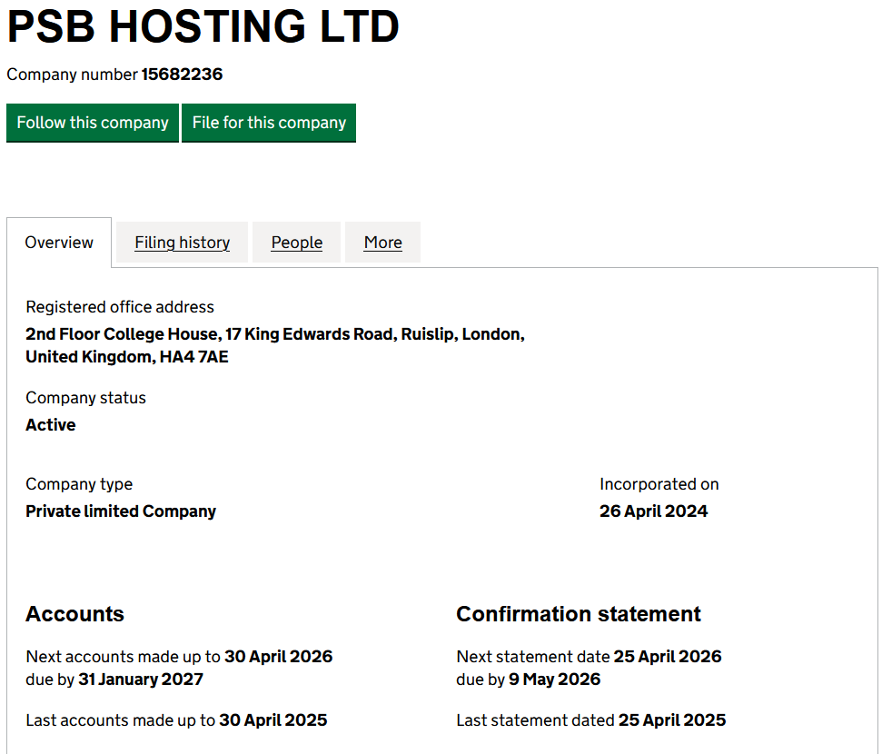 Interestingly it seems that PSB HOSTING LTD is filing as a dormant company, even though it seems that they are definitely still trading.